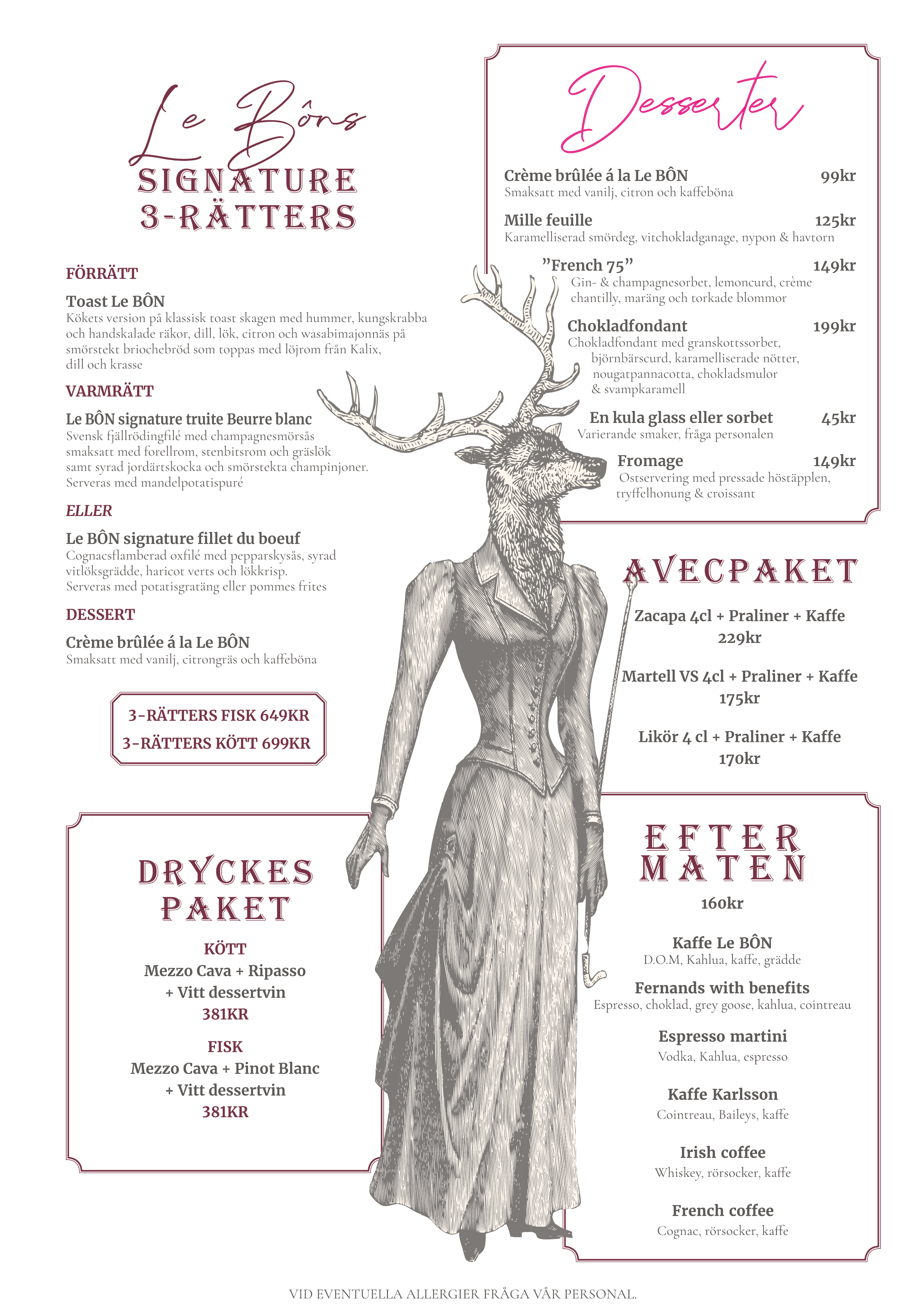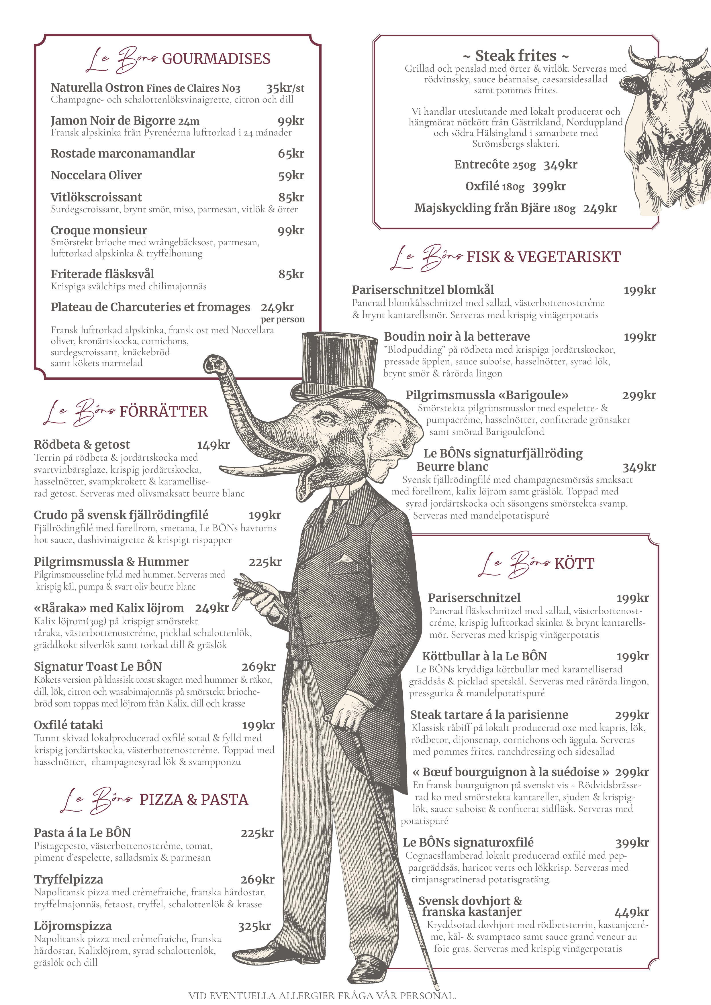På Le Bon kan du njuta av en noggrant utvald meny som förändras efter säsongens råvaror, där varje rätt är skapad med passion och hantverk. Från klassiska franska rätter till innovativa maträtter som ger en fräsch och lyxig upplevelse – vi sätter alltid kvalitet i fokus.